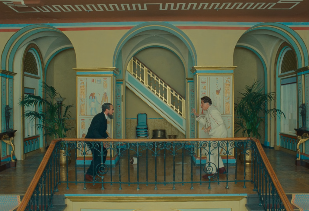 Zsa-zsa Korda materializa esse conflito, carregando culpa, ambição e cálculo no mesmo semblante. O mundo ao redor tornou-se uma vitrine incapaz de esconder as rachaduras estruturais. O cinema honesto permite que esse desmoronamento atravesse a forma, subvertendo a preferência habitual de Anderson em domar o sentimento pela estética. Aqui, a incapacidade da forma em dar conta de tudo transforma o filme. O cenário deixa de ser casa de bonecas para virar cenário de crime isolado pela fita amarela da polícia; a beleza torna-se evidência.